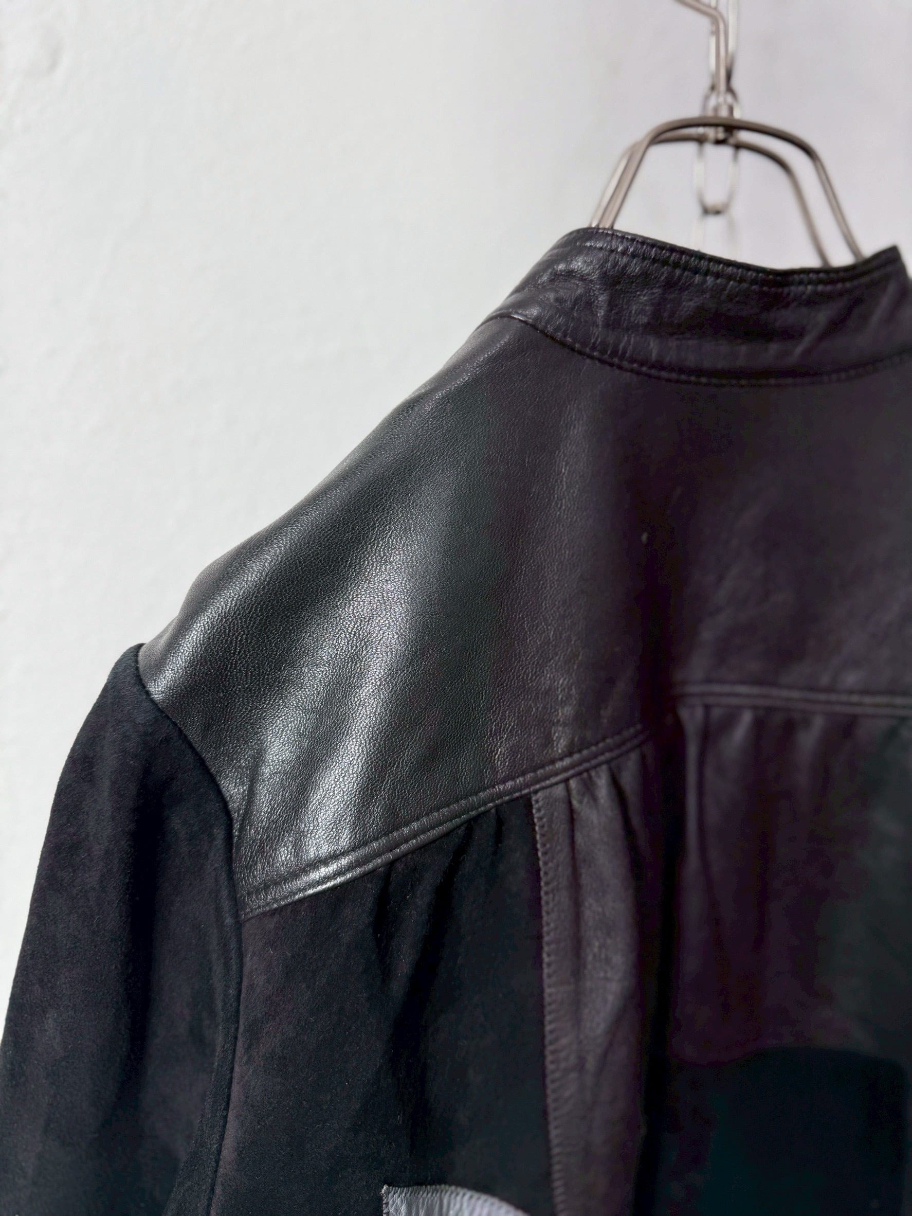 クールなカラーリング、スウェードレザー×レザーのパッチワーク。