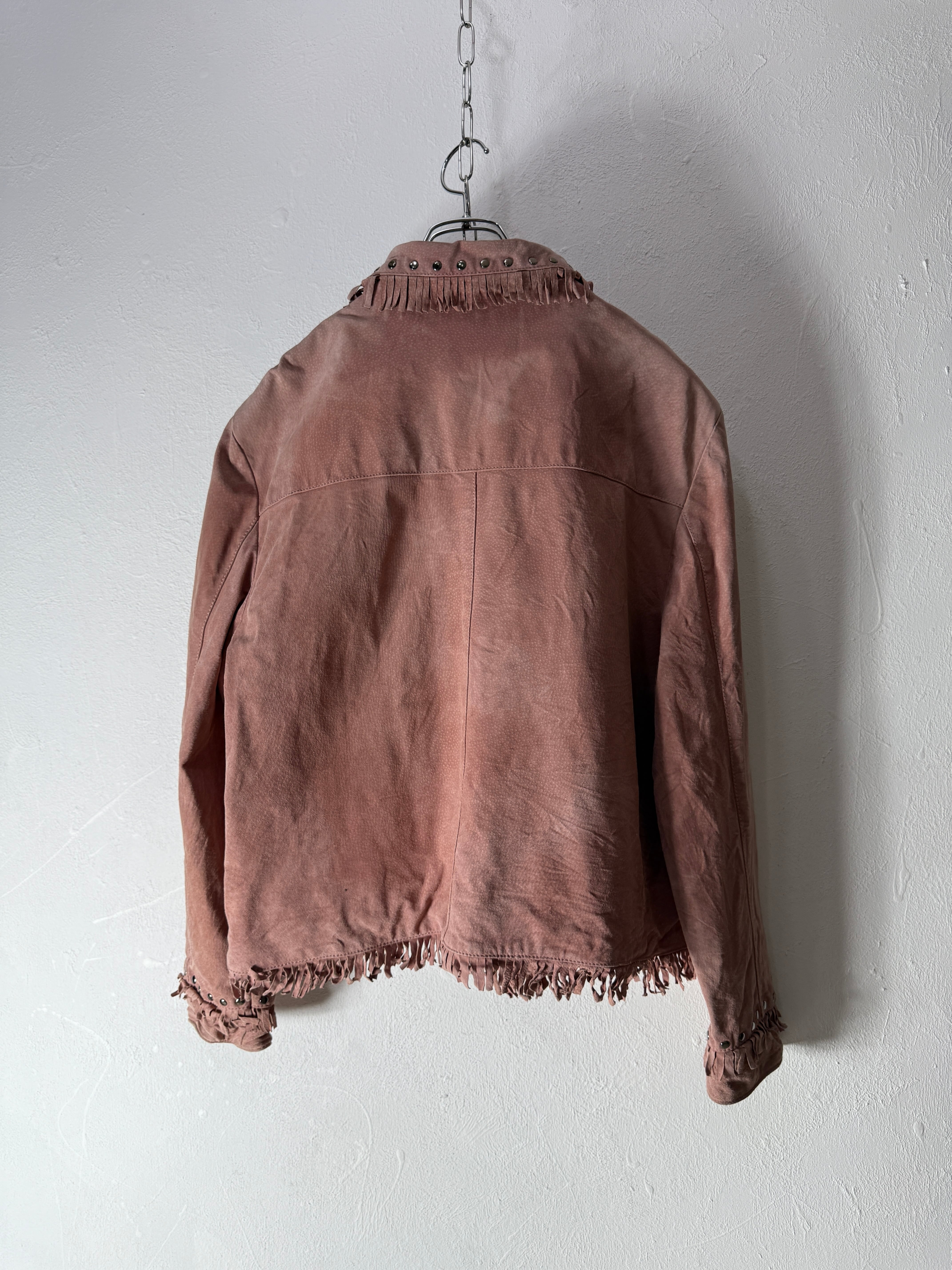 90~00’s Pink Suede leather Fringe design Jacket