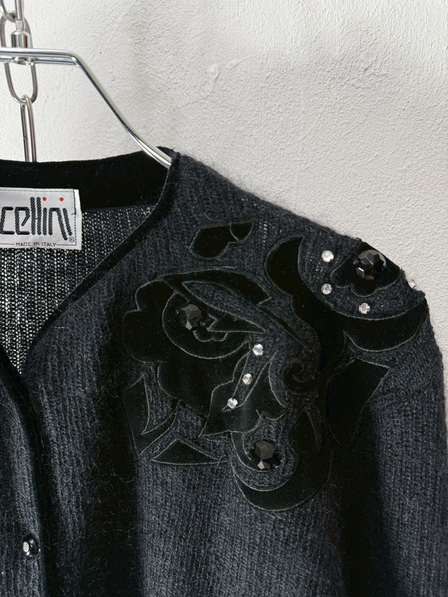 90’s Italy Made “cellini” Embellished Mohair Cardigan