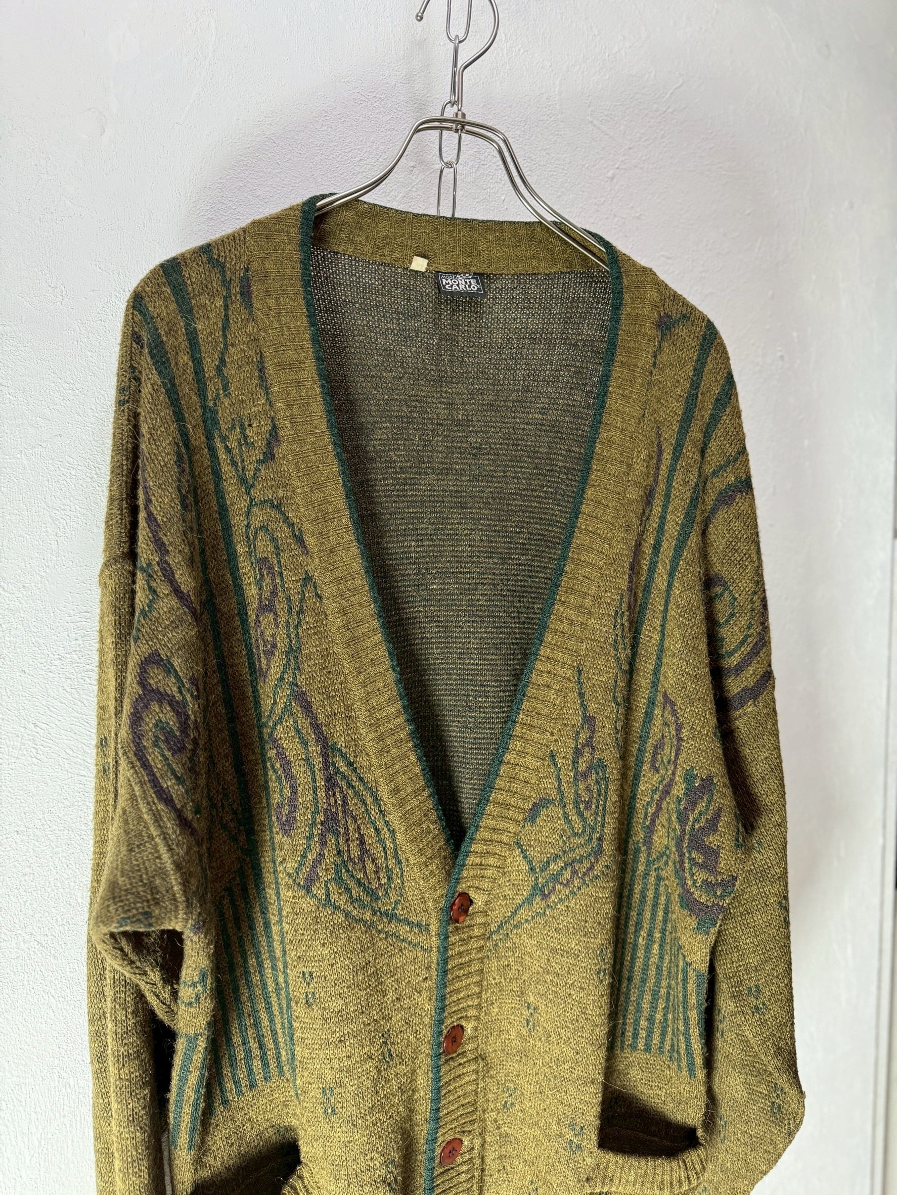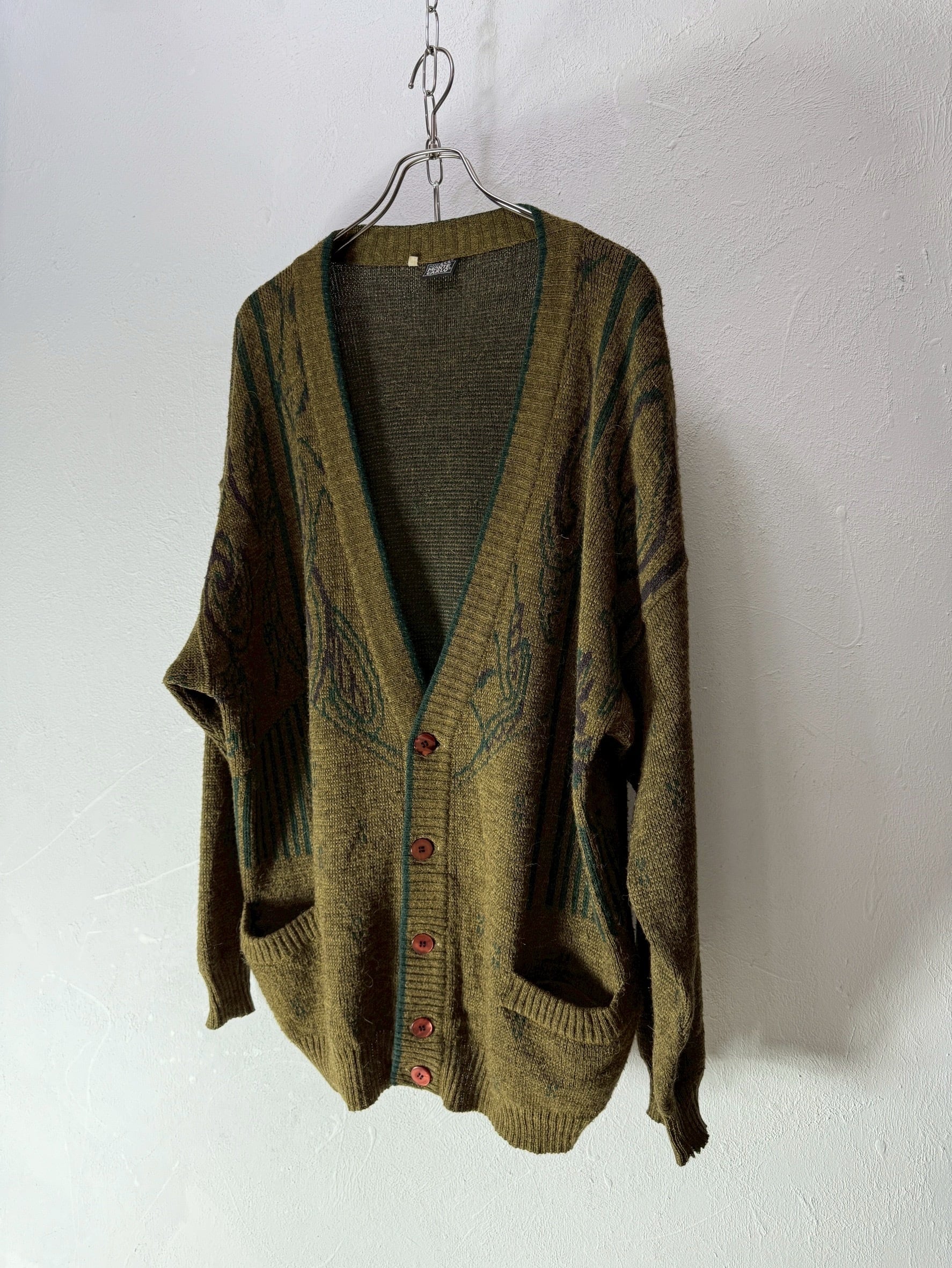 80~90’s ITALY made Alpaca Blend Geometric Jacquard Knit Cardigan