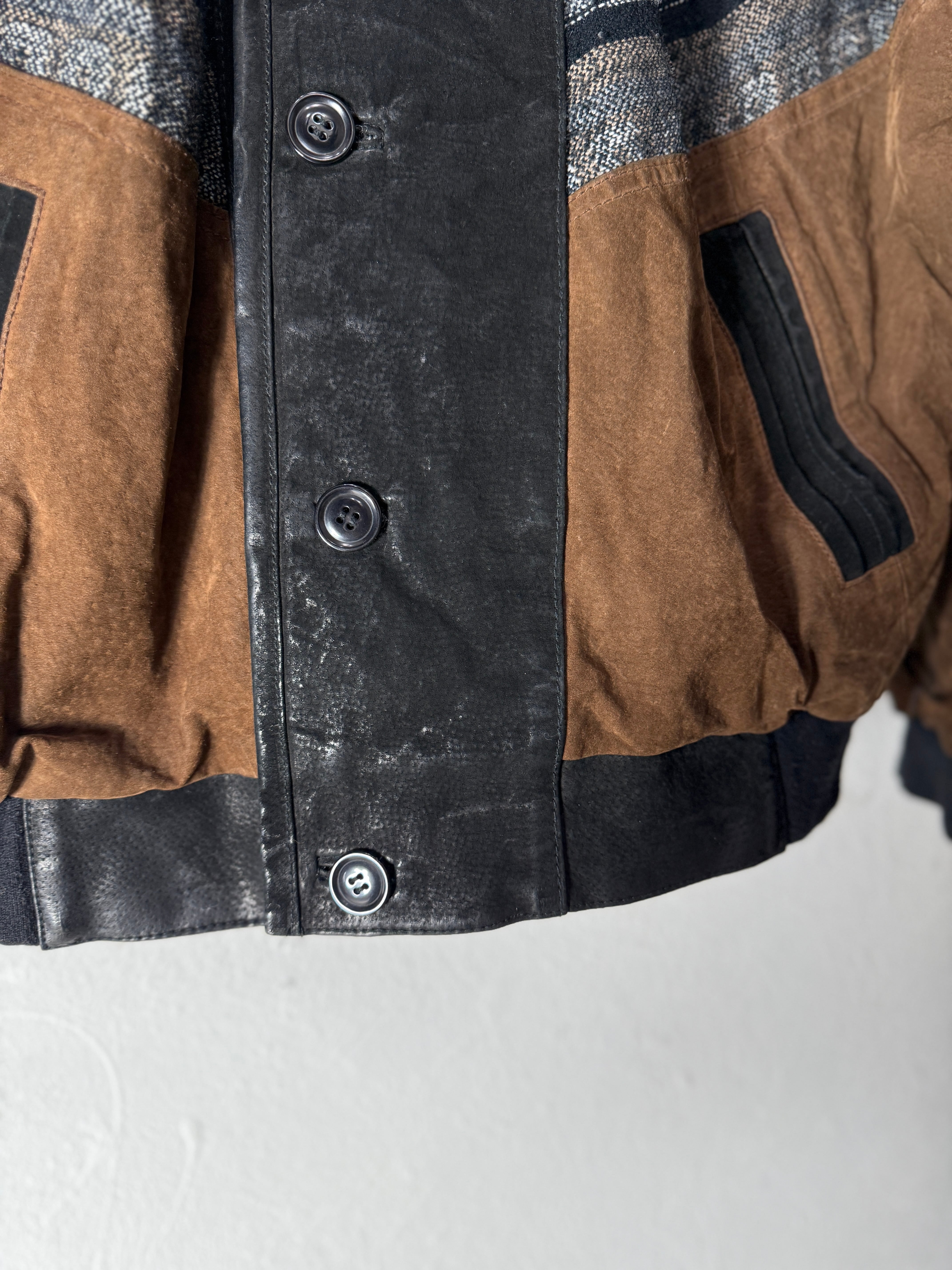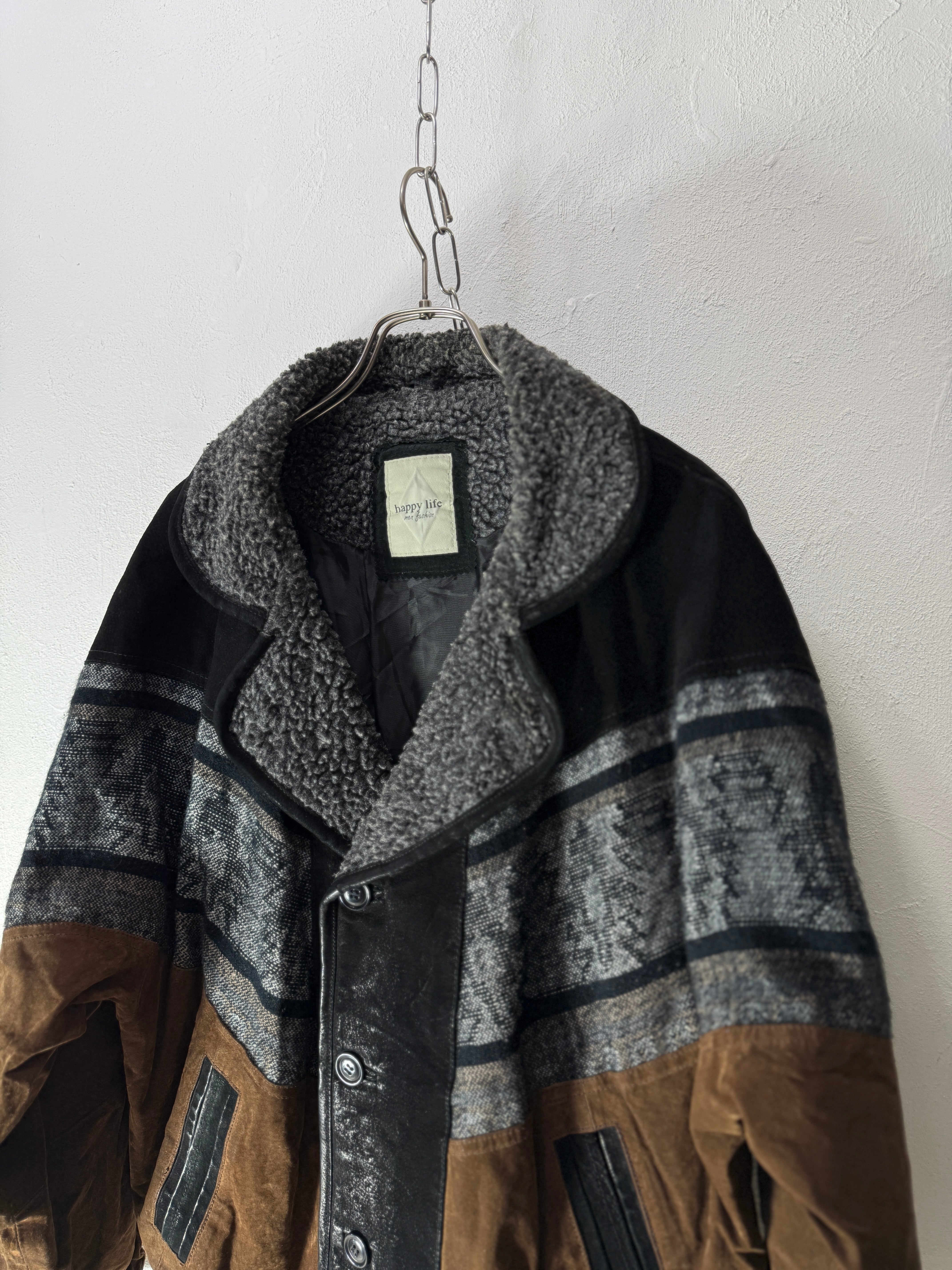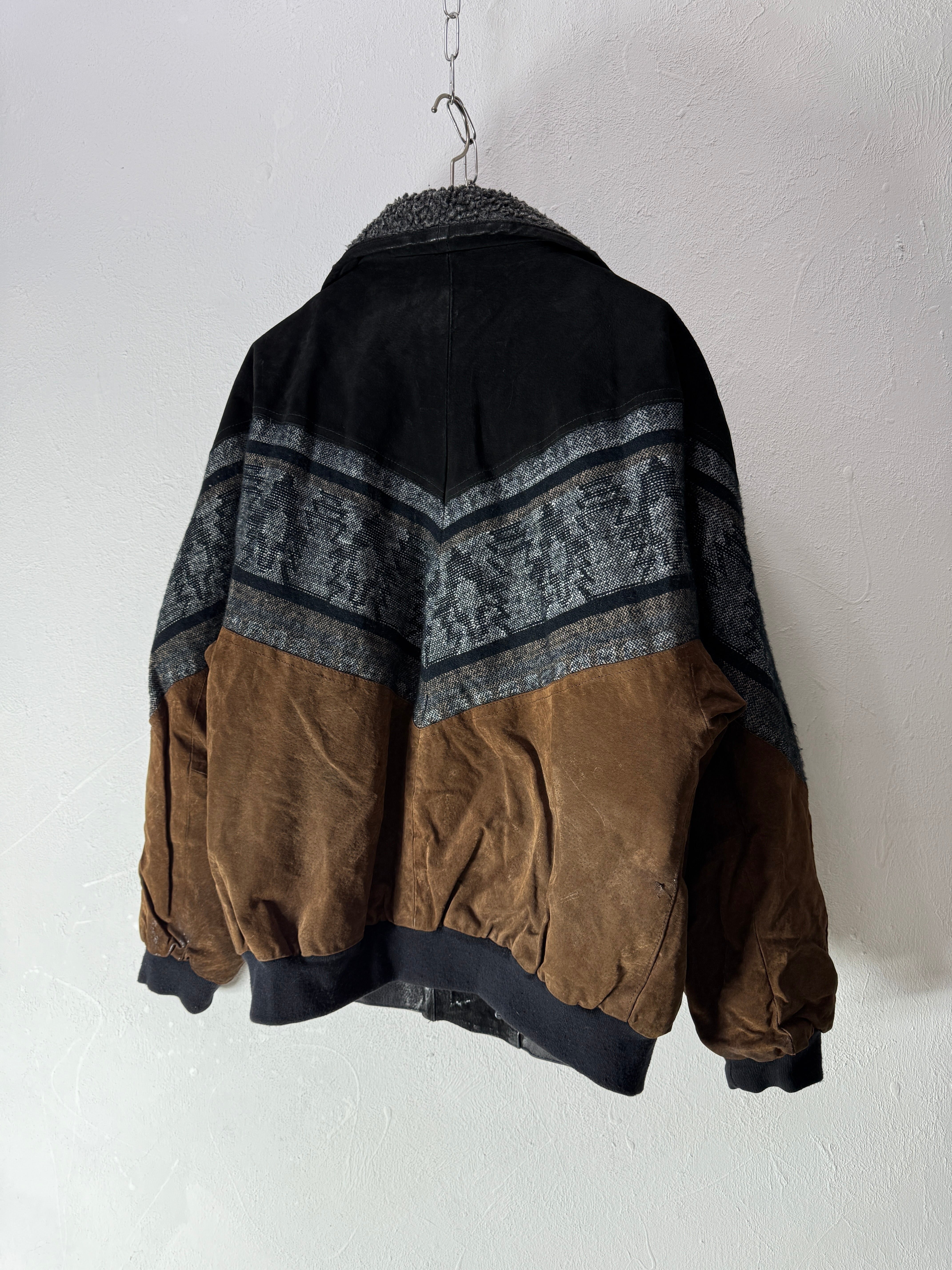 90s EUR Leather × jacquard design Jacket