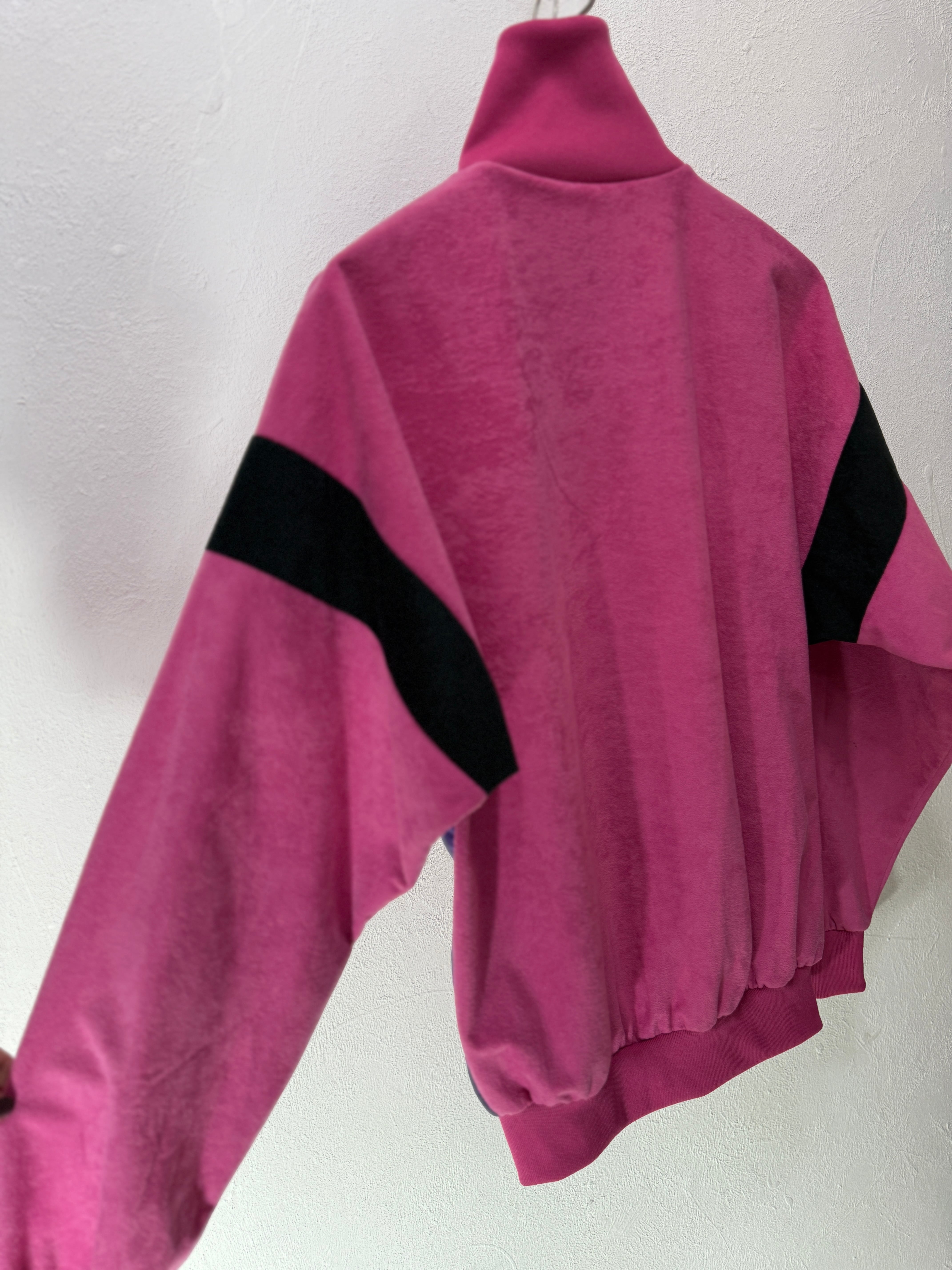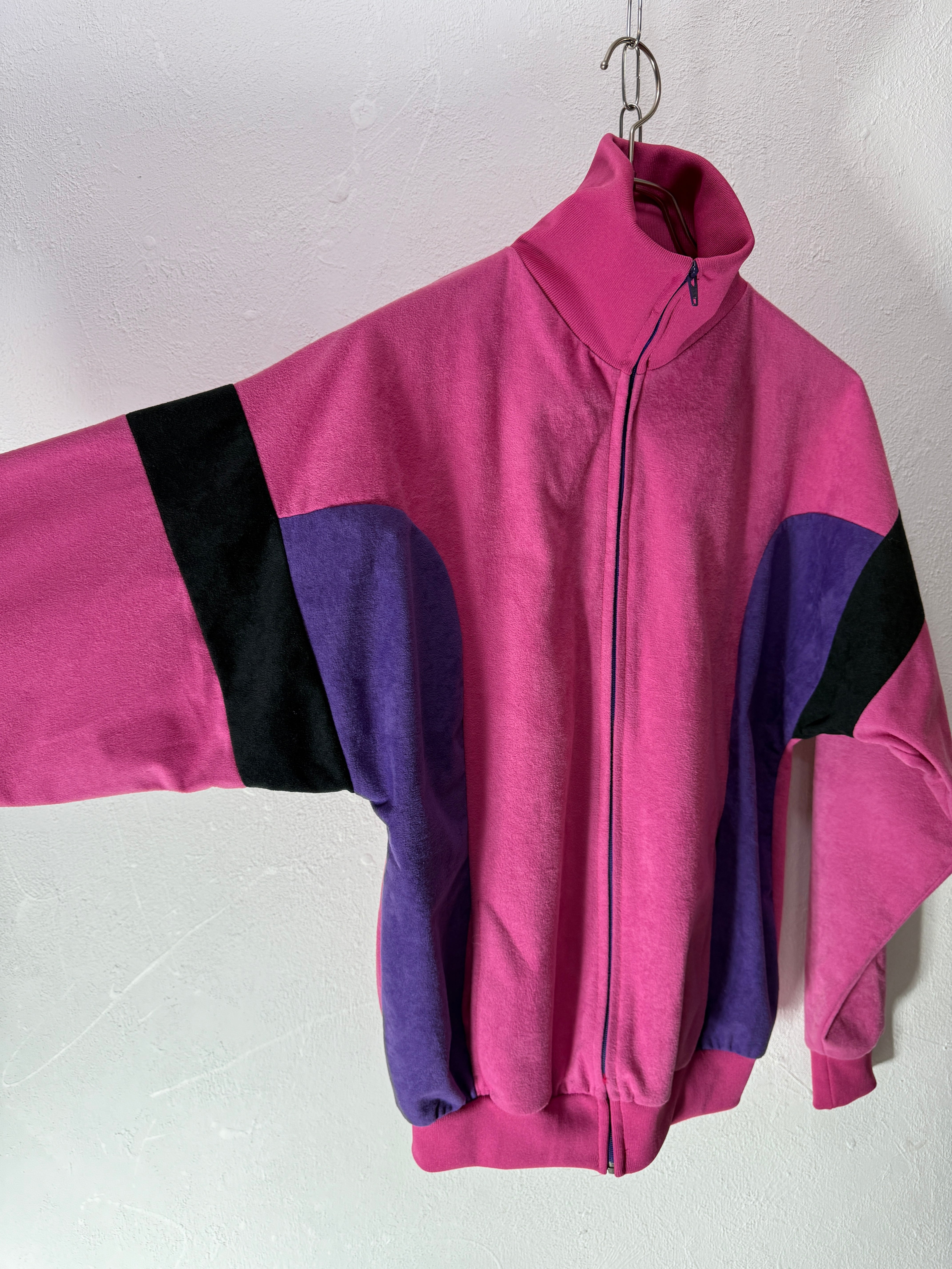 ピンク × パープル × ブラックのカラーブロックがユーロ古着らしい雰囲気をしっかり出してくれます。