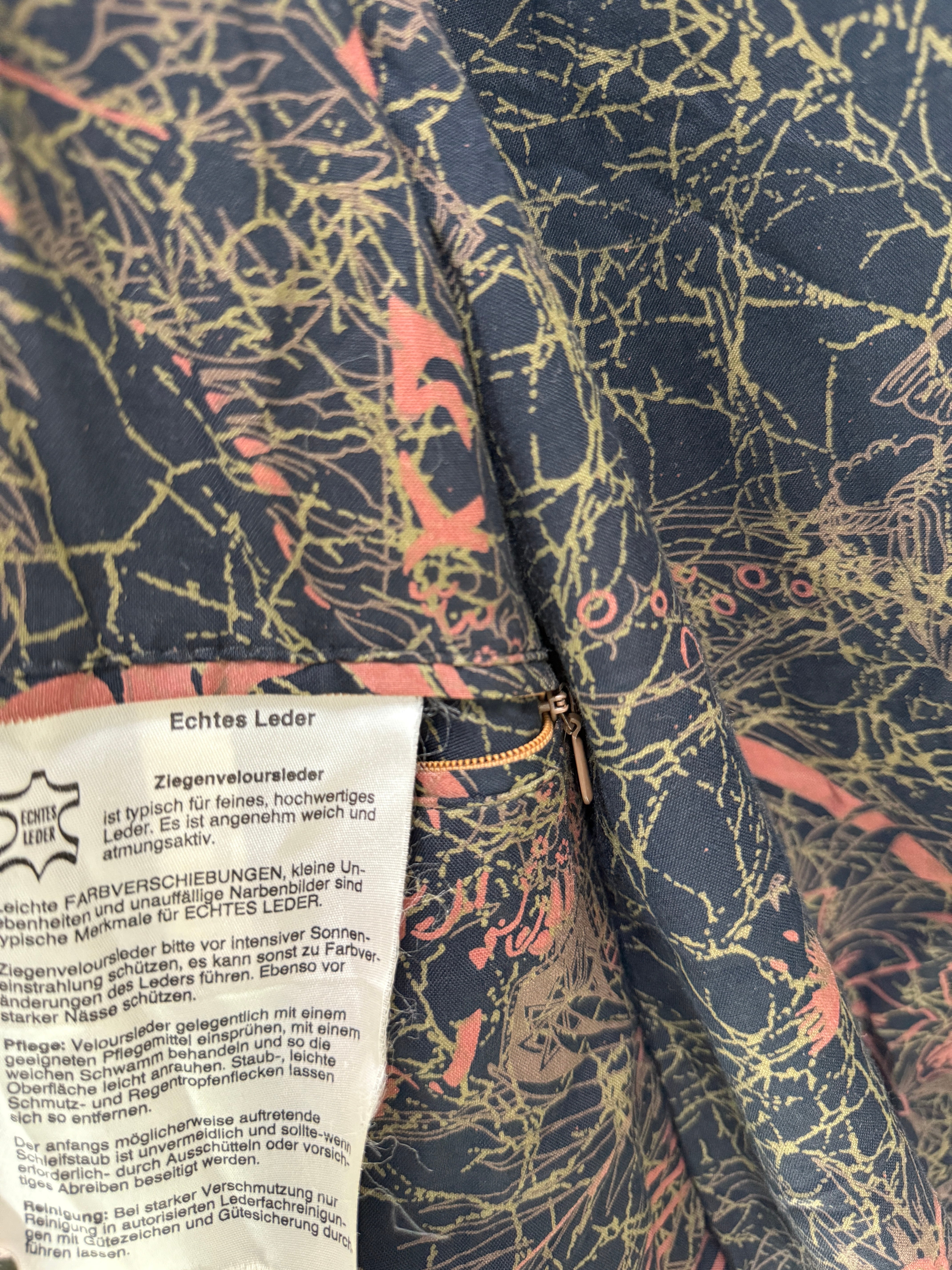 裏地には90sらしい抽象プリントが配され、
