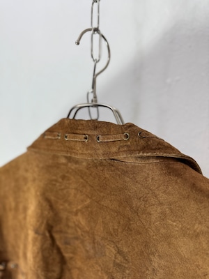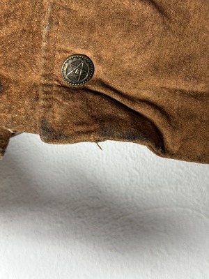 スエードレザーを使用したフリンジ付きレザージャケット。渋い色味やラフなフリンジ使いによってゆるっとルーズで今っぽい雰囲気を纏っています。