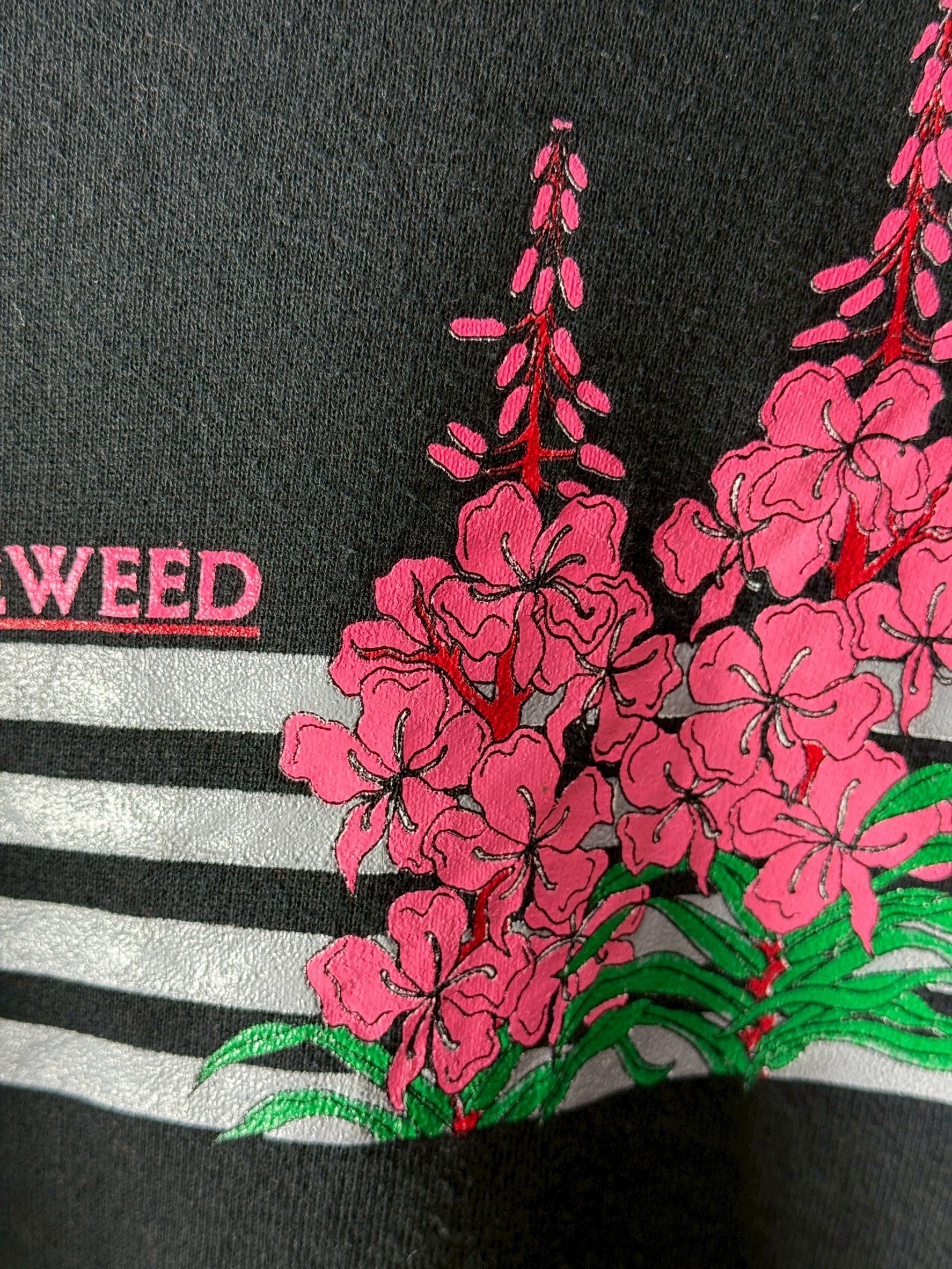 アラスカの短い夏にだけ咲く、鮮やかな野生花「Fireweed」をモチーフにしたスウェットシャツ。