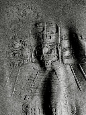 フロントに描かれているのは、サンタフェ鉄道を象徴するクラシックな蒸気機関車や列車。