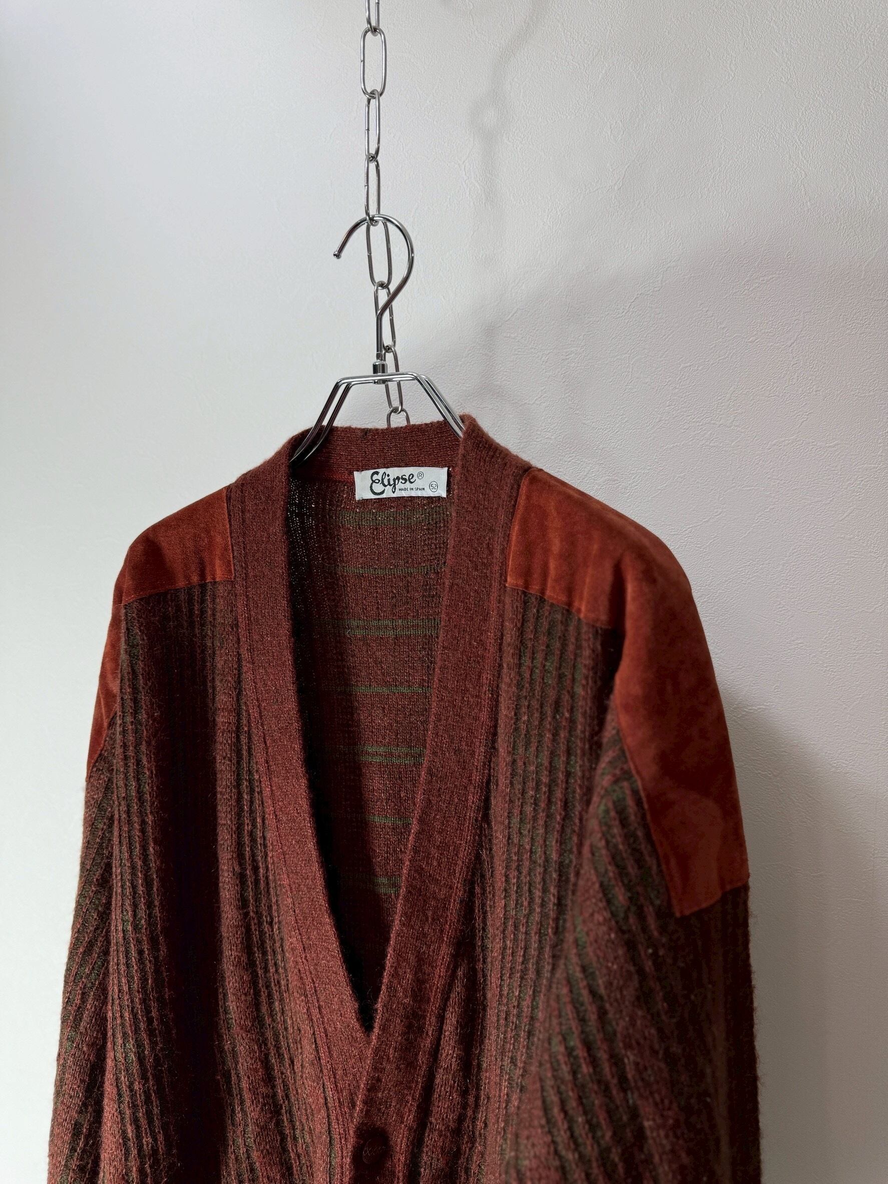 80〜90's Spain Made Suede Shoulder Design Mohair Blend Cardigan