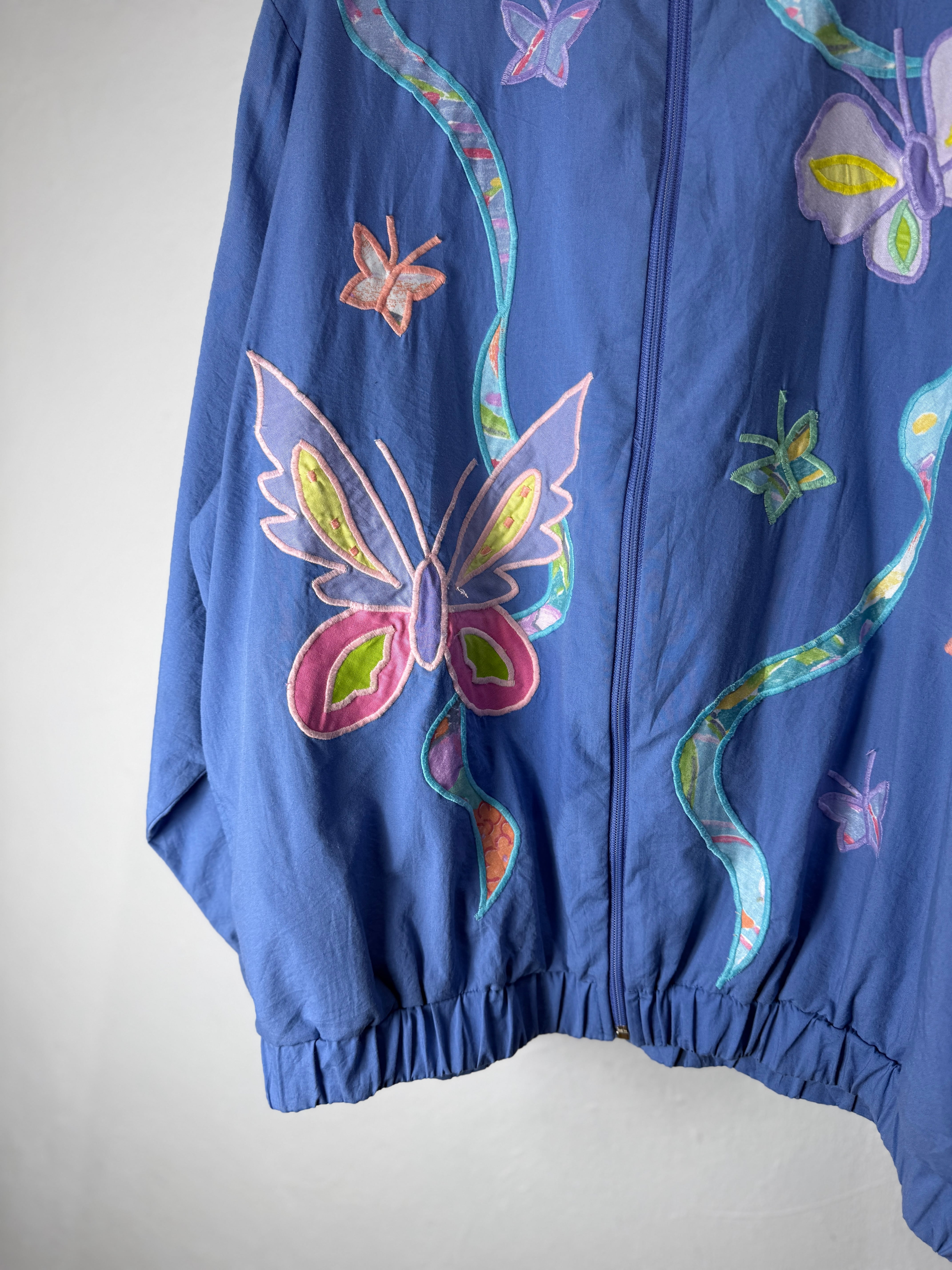 蝶や抽象モチーフが大胆に施されたデザインブルゾン。