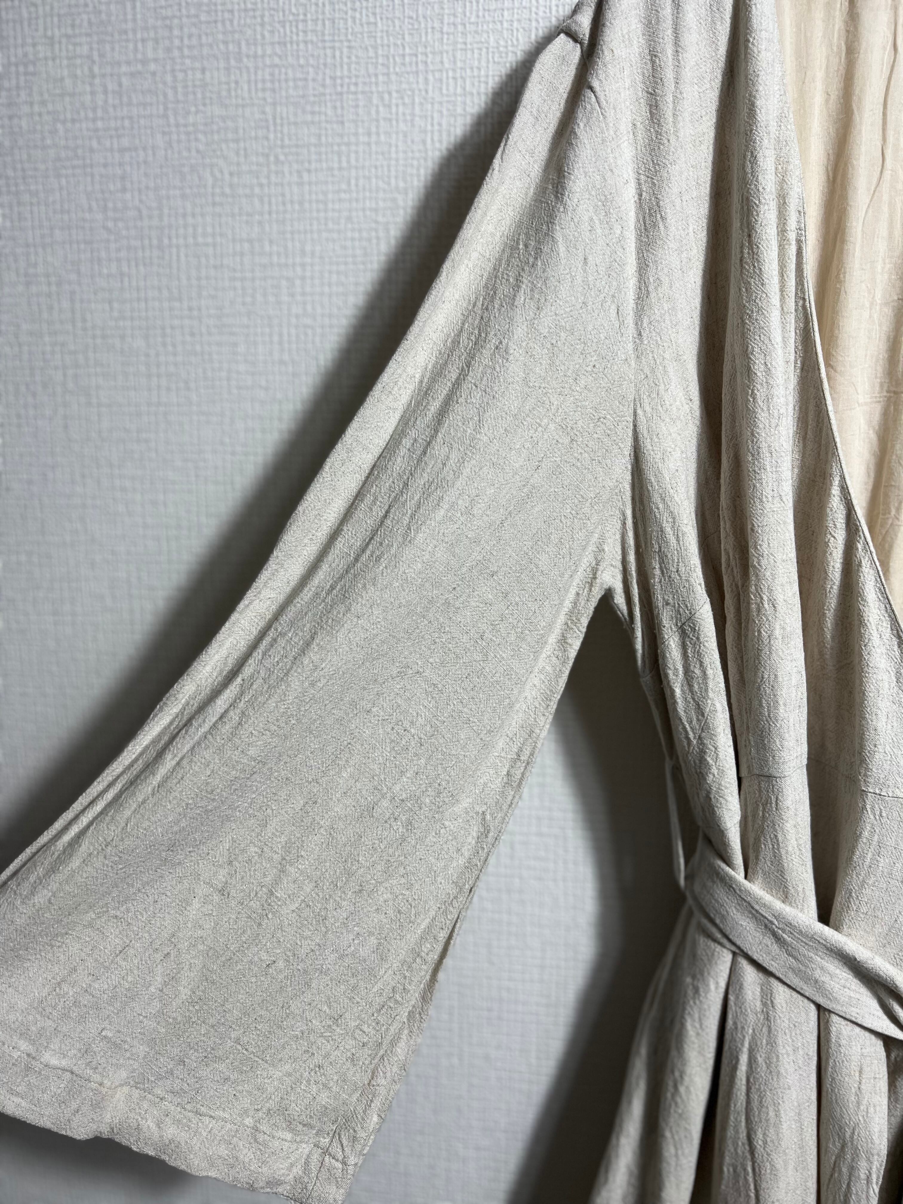 【ladies】Linen cotton wrap dress one-piece