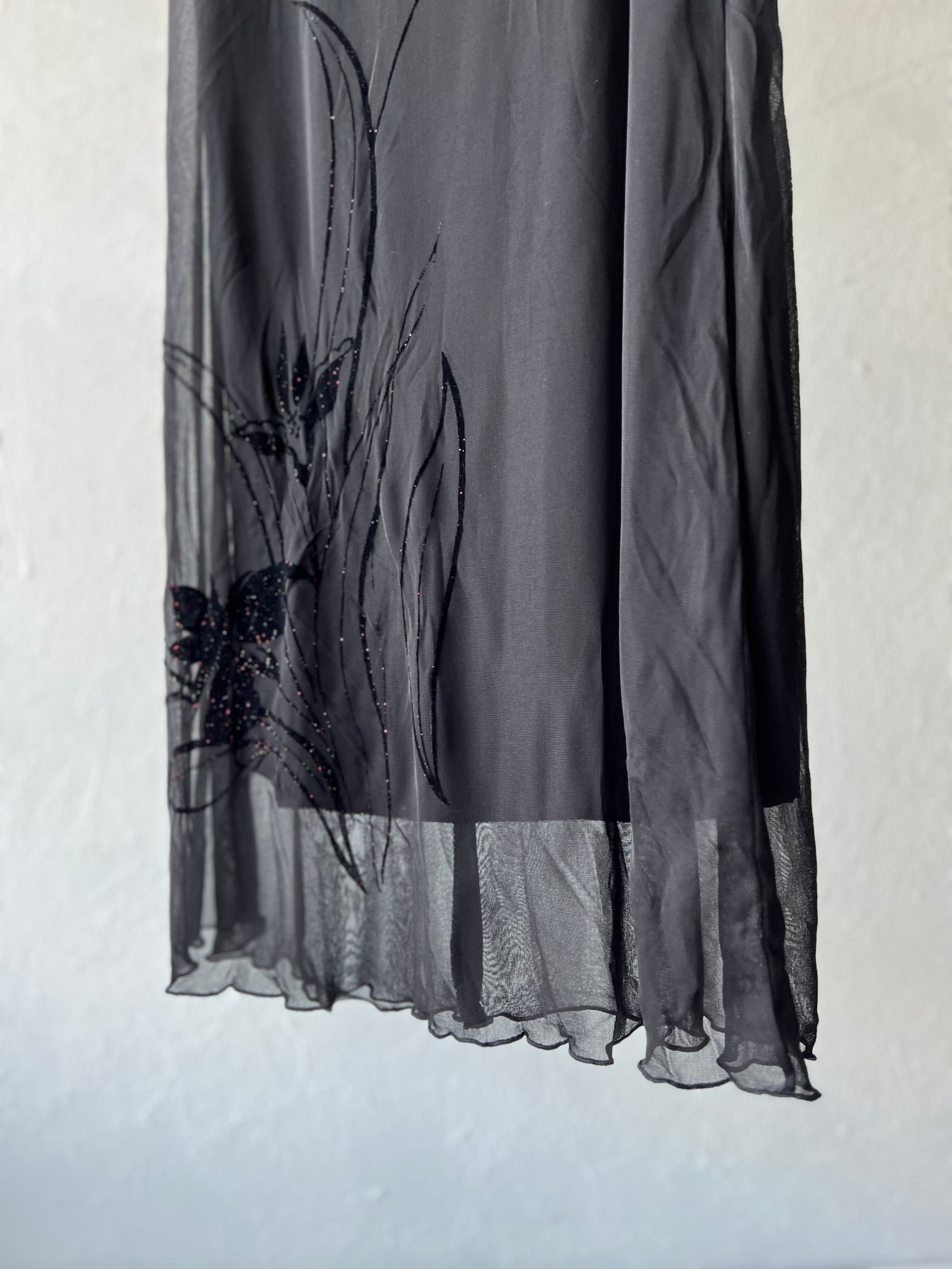 【ladies】sheer flower art print long skirt vintage