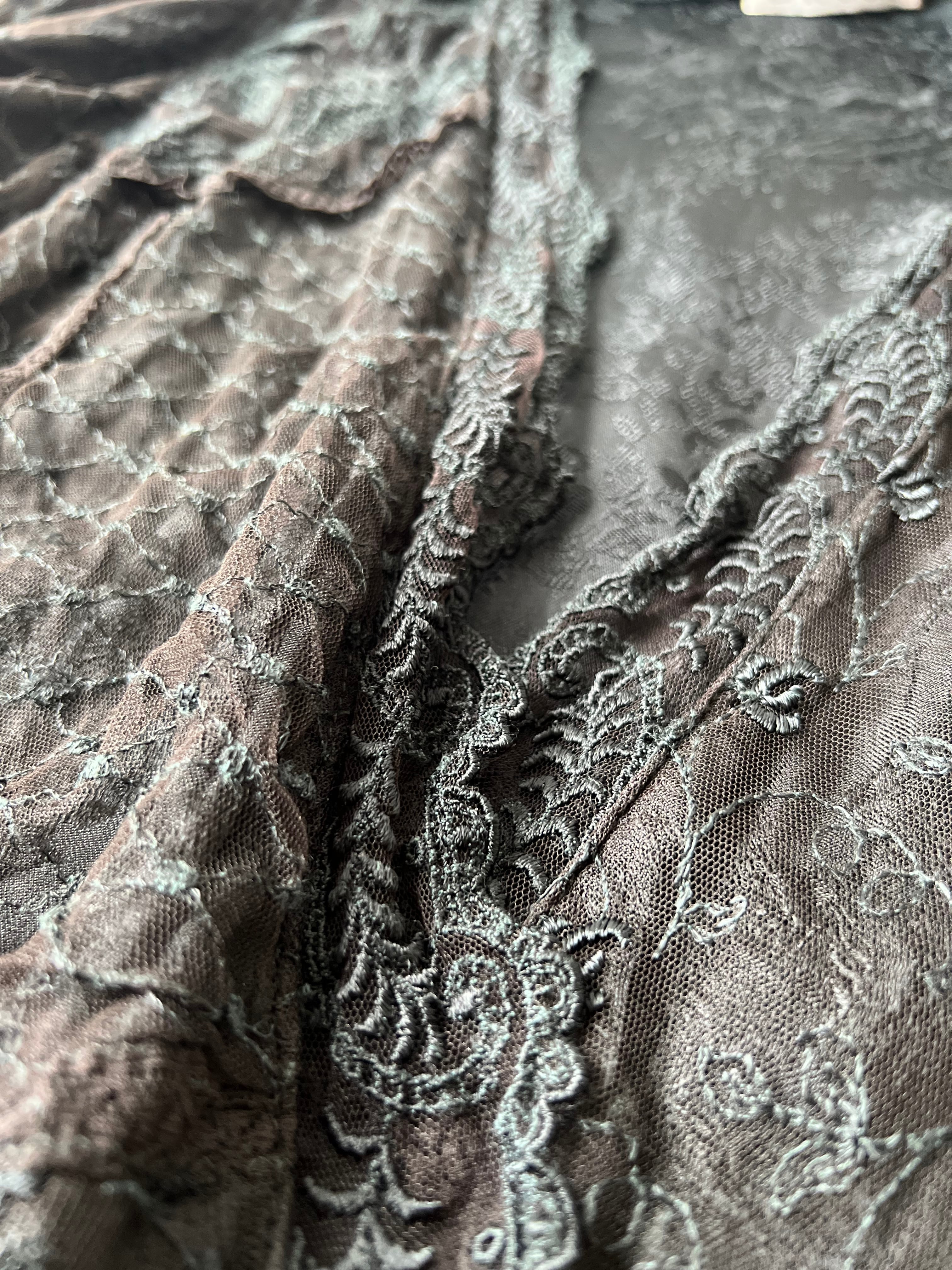 レース模様のジャカード生地に様々な種類のレースがパッチワークのように
