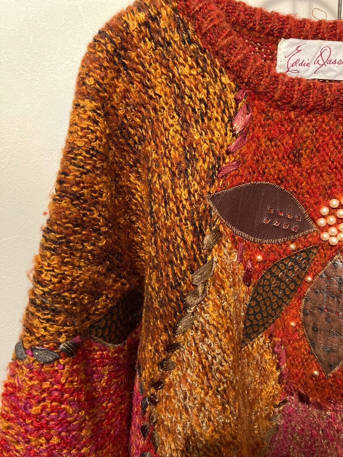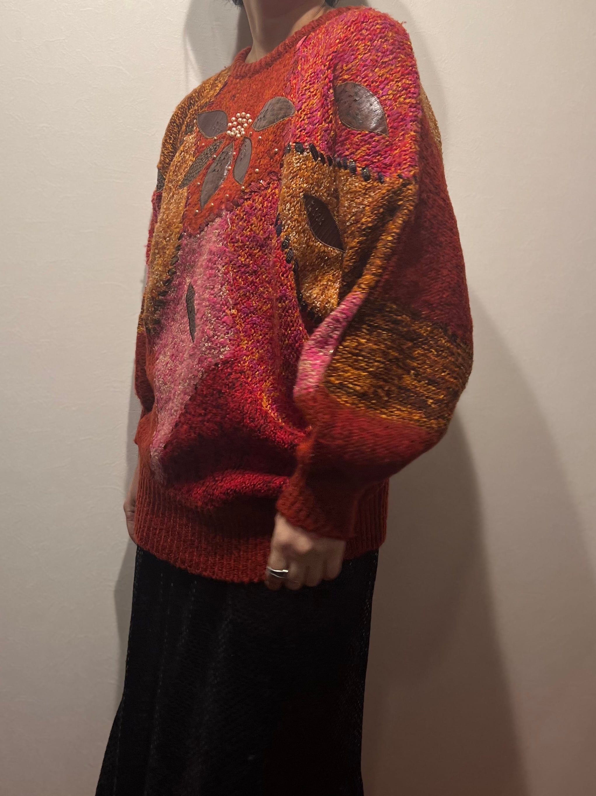 patch work design knit pullover vintage