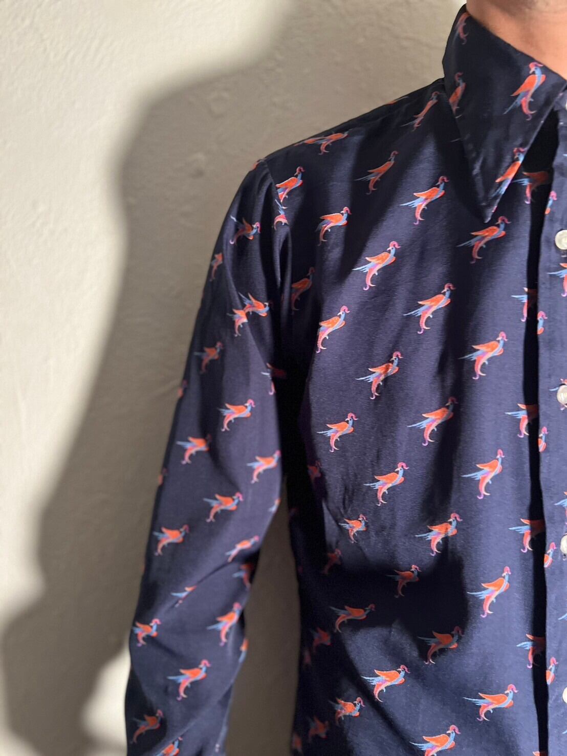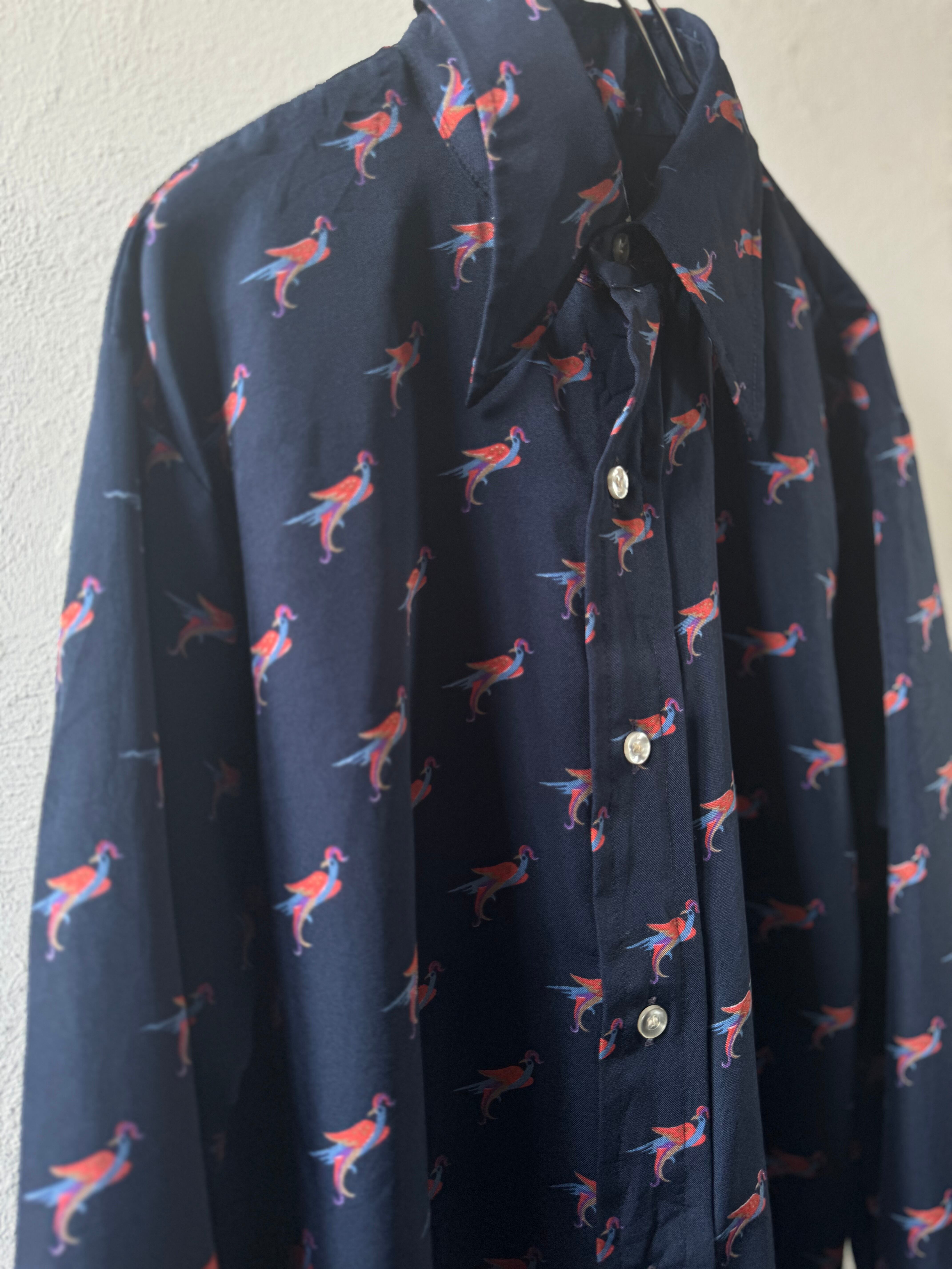 70's vintage patterned bird print shirt