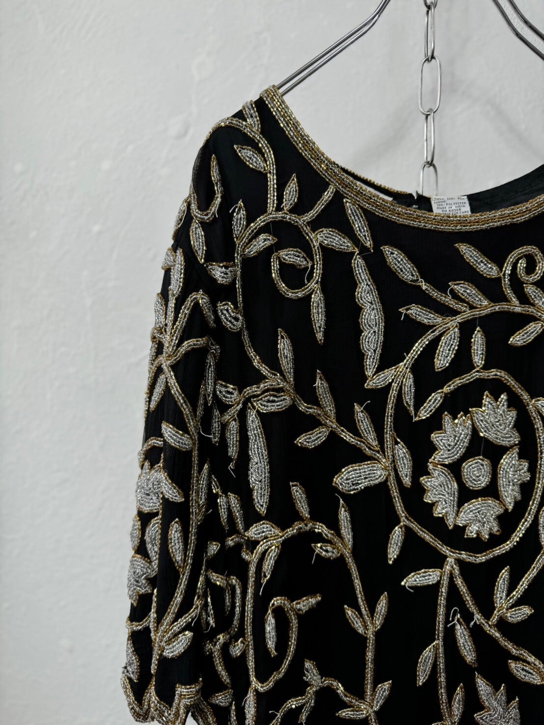 シルバーとゴールドのビーズが美しいシルクvintageトップス。