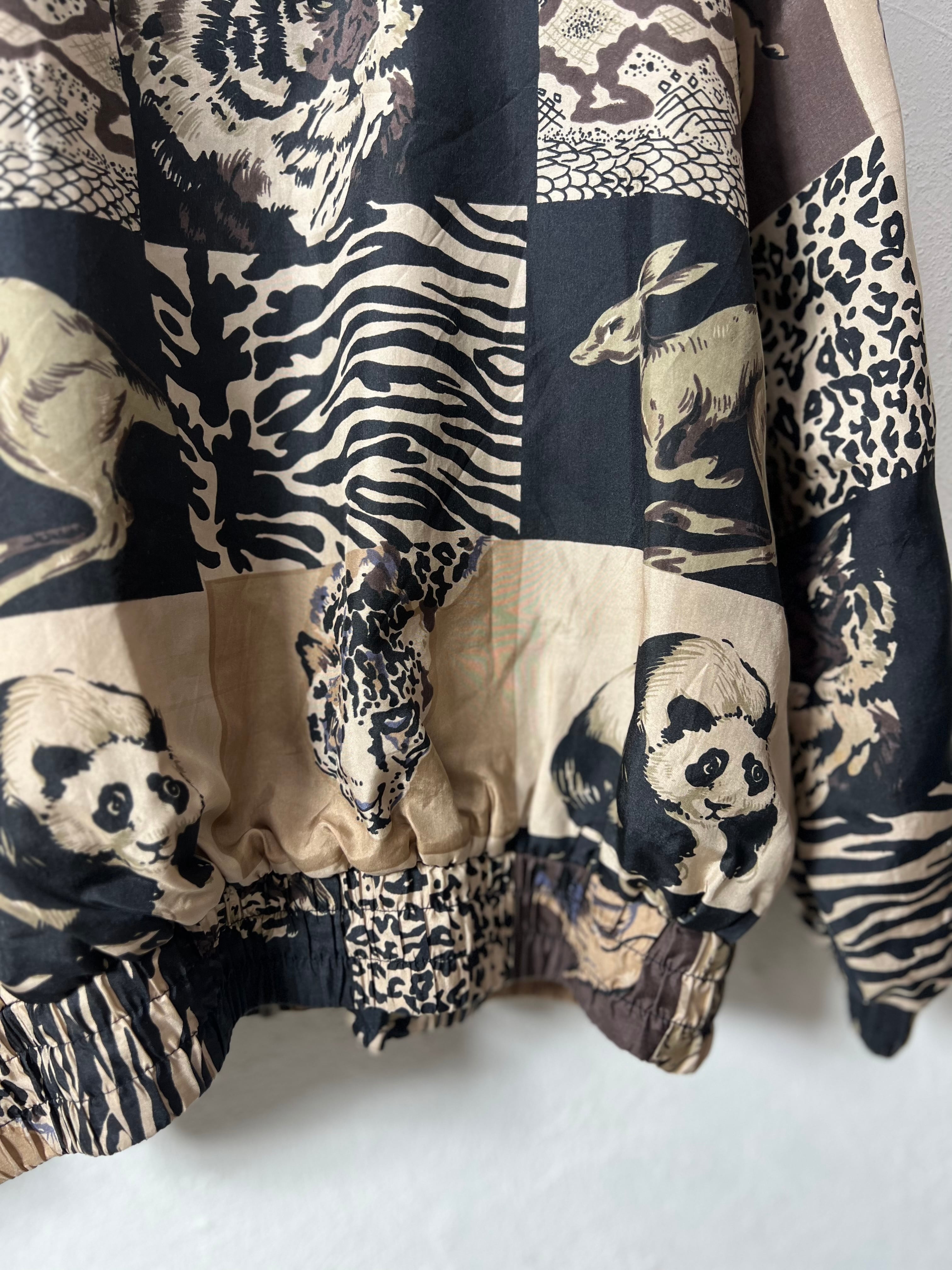90's All-over pattern animal silk jacket vintage